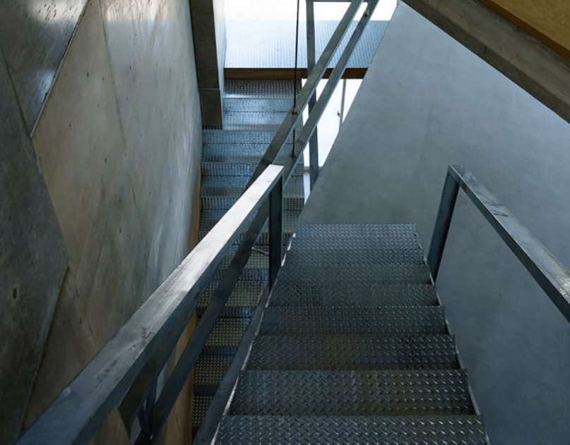這家辦公室裝修以極其有限的預(yù)算(大約比普通混凝土建筑少60%)完善了混凝土結(jié)構(gòu),玻璃開口、鍍鋅鋼樓梯和極簡的懸掛扶手,設(shè)計(jì)時(shí)非常注意,不會(huì)破壞整體氛圍的寧靜。另外設(shè)計(jì)師還設(shè)計(jì)了一些內(nèi)置家具,只使用Lauan膠合板,這是一種主要用于工藝品和背板的熱帶硬木材料。