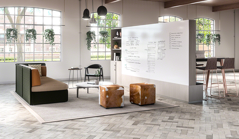 由于Steelcase尋求在開放空間和個人辦公室之間找到一個折衷方案,所以在他們在辦公室裝修中除了工作站之外,該公司還提出了協(xié)作要素。為了支持團隊合作和工作場所內(nèi)的共享,這些元素允許為演示和會議以及接觸設(shè)置一個開放的布局空間。