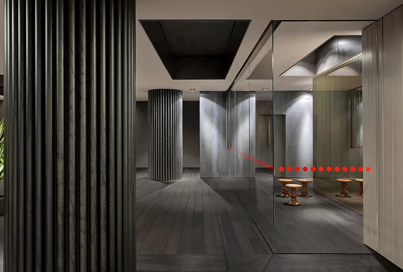 辦公室裝修的8樓,開放美麗的城市景觀,是為Adris Grupa管理委員會(huì)主席和最親密的伙伴。它的融合體現(xiàn)在企業(yè)豪華、舒適和戲劇氣氛的結(jié)合上,辦公室裝修強(qiáng)調(diào)了奢華和“工業(yè)”材料,如暗鋼、納洛撒哈拉大理石、玫瑰木單板、橡木地板和銅管,并以高光澤的紅色表面的形式孤立地吸引了視覺吸引子。公司不使用巨大的手段來傳達(dá)威望。相反,游人的活動(dòng)是精心編排的充滿驚喜的辦公室裝修空間戲劇的一部分,即滑動(dòng)屏幕打開并消失在墻壁上,反射面破壞空間知覺,意想不到的視角正在打開。