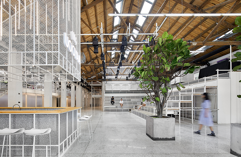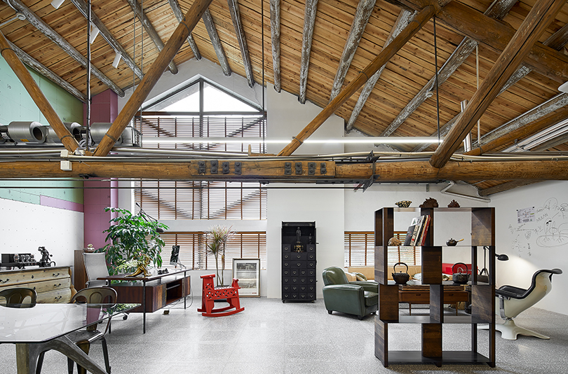 這個(gè)地點(diǎn)曾經(jīng)是倉庫以前的太空工廠。這個(gè)辦公室裝修保留原來的結(jié)構(gòu),只對(duì)天花板進(jìn)行簡(jiǎn)單的修繕和翻新-在重建廠區(qū)的過程中,還增加了天窗。他們讓在新建的第二層工作的人們享受陽光和天空的景色。