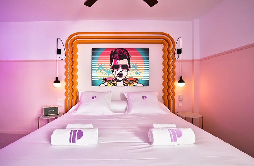 擁有霓虹色的paradiso ibiza藝術(shù)酒店位于邁阿密和孟菲斯之間。這是對酒店裝修的一種慶祝,它點綴著20世紀(jì)20年代的裝飾藝術(shù)風(fēng)格和20世紀(jì)80年代的孟菲斯風(fēng)格。這個度假勝地被恰如其分地命名為藝術(shù)酒店,它試圖通過其色彩設(shè)計讓游客沉浸在當(dāng)代藝術(shù)中。
