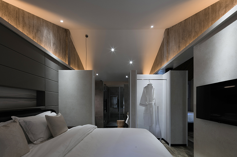 當(dāng)你走上臺階時,蜿蜒的小徑將你帶到接待室。陰影與水墨山水畫相似,時間也在這樣的氣氛中緩緩下來。