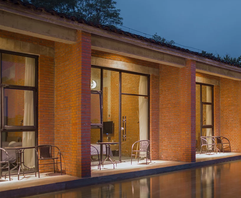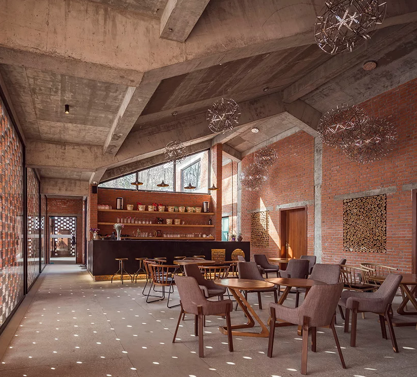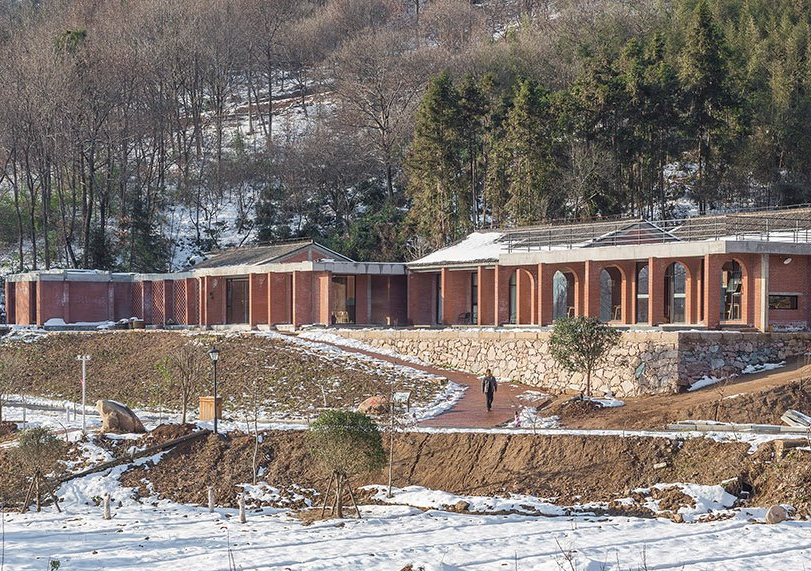 該大樓是大別山戶外露營公園的重要組成部分,酒店裝修包括客房,咖啡廳,茶館和禮堂,可用于公共聚會和培訓(xùn)項目,以及冥想空間。建筑師認為,中國傳統(tǒng)建筑中最具吸引力的部分是房屋,庭院和道路之間的關(guān)系,因此功能是通過多層途徑交織在一起的。不同空間特征的私密庭院是交叉的建筑物,而復(fù)雜甚至隱藏的路徑鼓勵游客在場地周圍找到自己的方式。該建筑的主要材料是紅磚,通常在20世紀80年代使用。水磨石地板和室內(nèi)墻壁上的外露材料增添了設(shè)計師想要喚起的田園感。